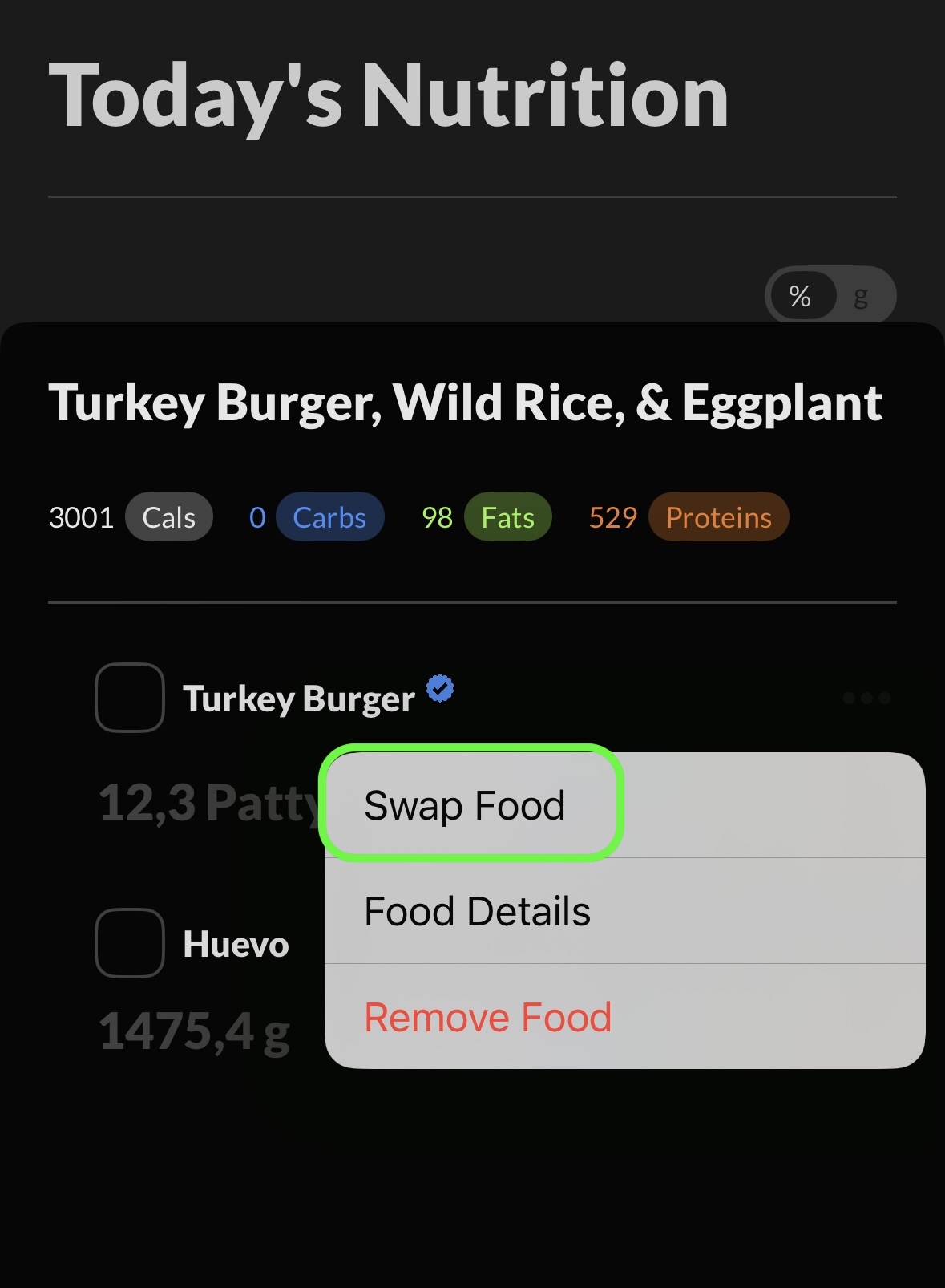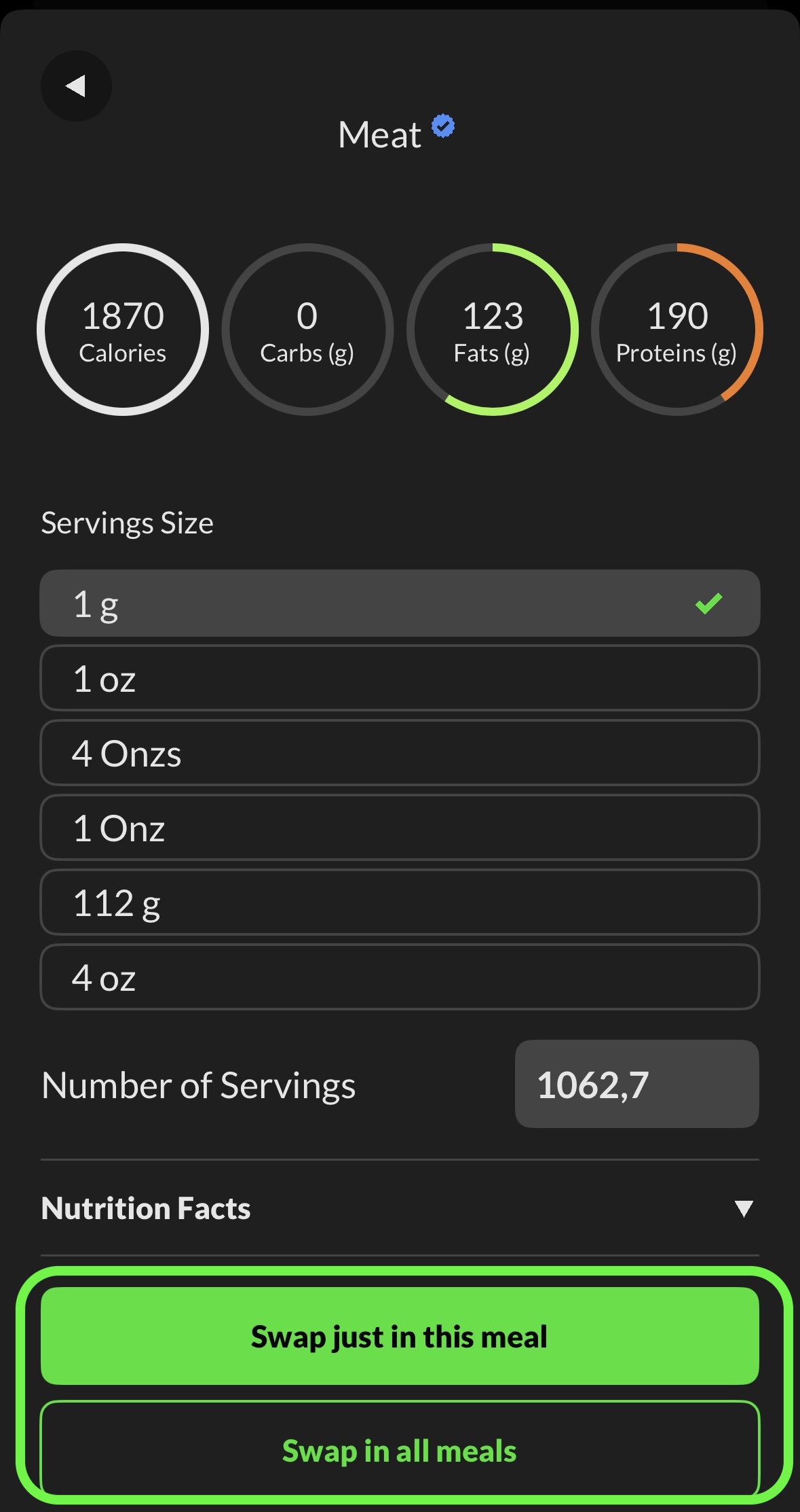 5. The system will automatically calculate the amounts for it to match the calories for that day (picture 4).